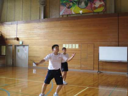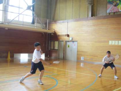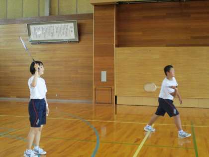 6月27日(月) 2年生の保健体育の授業の様子です。 バドミントンの試合をしていました。