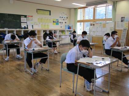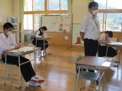 期末考査の様子です。 公開日 2022/06/30 更新日 2022/06/30 日々の活動から 6月30日(木) 本日1年生は、音楽、英語、保健体育です。 2年生は、保健体育、数学、音楽です。 3年生は、理科、国語、社会です。 上から、1年生、2年生、3年生の様子です。