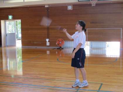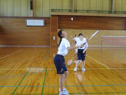 7月1日(金) 1・3年生の合同保健体育の授業の様子です。 バドミントンの試合をしていました。