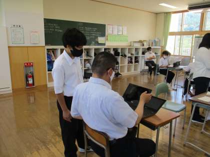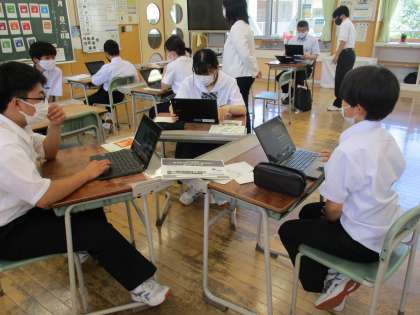 1年5・6限 楡の木タイム 公開日 2022/07/01 更新日 2022/07/01 日々の活動から 7月1日(金) 1年生の楡の木タイムの様子です。 校外学習の下調べと学習発表会の準備をしていました。