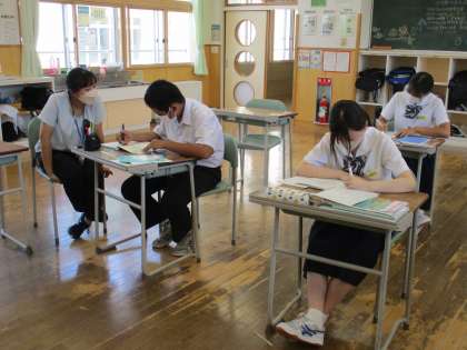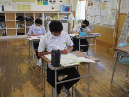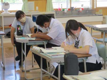 7月1日(金) 2年生の英語の授業の様子です。 期末考査の見直しをしていました。