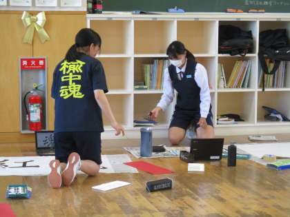 7月1日(金) 3年生の楡の木タイムの様子です。 体育大会の団毎にスローガンを作成していました。