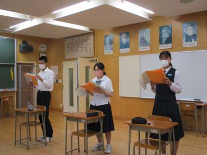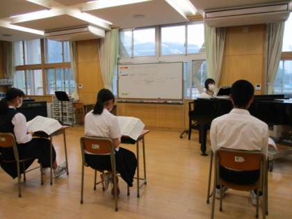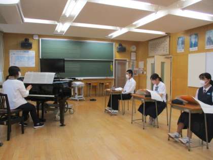 7月4日(月) 3年生の音楽の授業の様子です。 「合唱曲の音程の流れを覚える」という内容の授業でした。