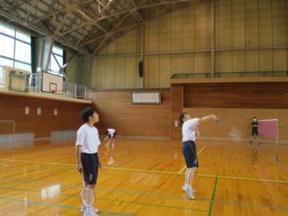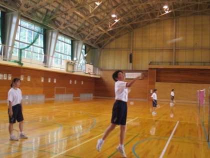 7月4日(月) 1年生の保健体育の授業の様子です。 バドミントンの試合をしていました。