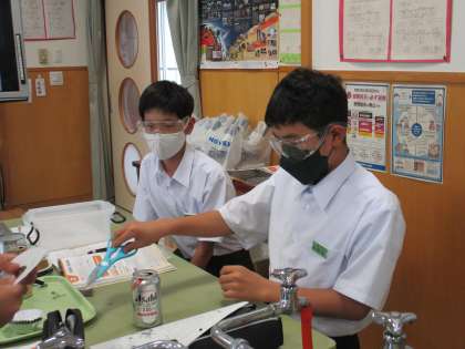 7月4日(月) 1年生の理科の授業の様子です。 「金属と非金属の違い」という内容の授業でした。