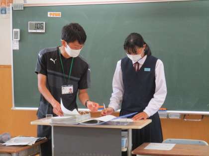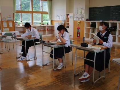 3年6限 学級活動 公開日 2022/07/04 更新日 2022/07/04 日々の活動から 7月4日(月) 3年生の学級活動の様子です。 学年主任からオープンハイスクールの全体への話と個別の話がありました。 その後、各自が「1学期を振り返って」という作文を書いていました。
