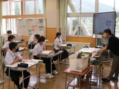 1年1限 英語 公開日 2022/07/06 更新日 2022/07/06 日々の活動から 7月6日(水) 1年生の英語の授業の様子です。 「どんな○○?何の○○?と質問するには」という内容の授業でした。