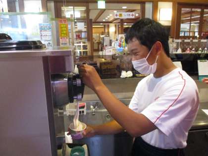 レストラン担当者は、注文をとったり、ソフトクリームをつくったり、楽しそうに活動していました。
