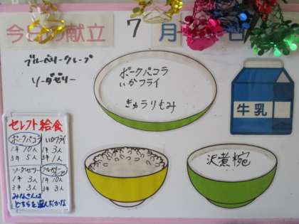 本日の給食メニューです。楽しみにしていた、選択献立の日です。
