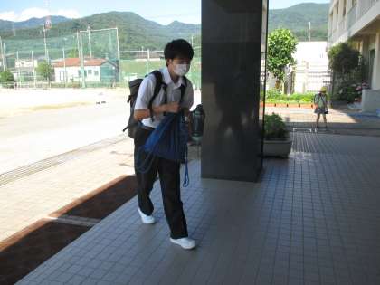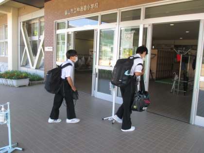 さわやかな青空の中、元気に登校しています。