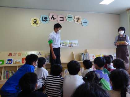 「社会に学ぶ『14歳の挑戦』」細入図書館2 公開日 2022/07/08 更新日 2022/07/08 日々の活動から 午後からは、絵本の読み聞かせがありました! 小学生たちや小学校の先生たちが来てくれて、 「何を読んでくれるのかな?」と興味を持って聞いています! とても上手に読むことができました!お褒めの言葉もいただきました!! お疲れ様でした。