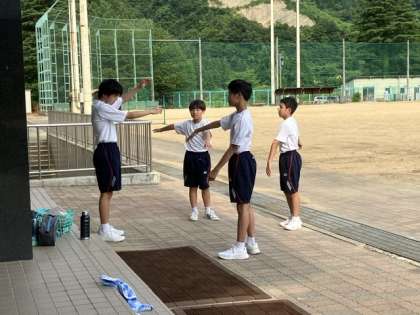 陸上競技部の活動 2 公開日 2022/07/08 更新日 2022/07/08 日々の活動から ノートを早く書き終わった生徒は、道具の片付けをしていました。 終わりの体操もしました。 今日の仮の部長から最後の話がありました。 「やはり先輩にはまだかなわないけど、来週先輩が来た時に、少しでも進歩したところを見せたい。」と決意を述べていました。 1年生も少しづつ成長してきていることを嬉しく思います。