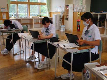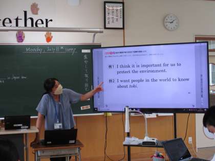 3年5限 英語 公開日 2022/07/11 更新日 2022/07/11 日々の活動から 7月11日(月) 3年生の英語の授業の様子です。 「日本の絶滅危機の動物について調べ、英語で発表しよう。」という内容の授業でした。