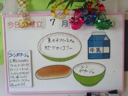 本日の給食メニューです。