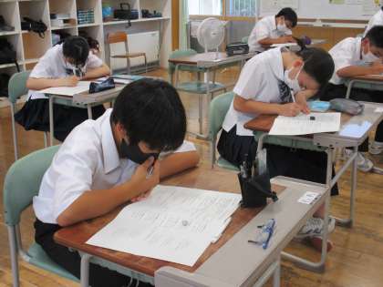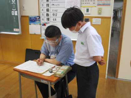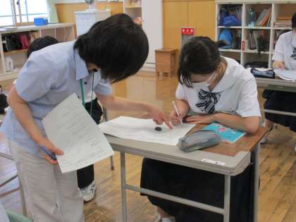 1年6限 数学 公開日 2022/07/12 更新日 2022/07/12 日々の活動から 7月12日(火) 1年生の数学の授業の様子です。 2章の復習をしていました。 教科担当者が一人一人にアドバイスしていました。