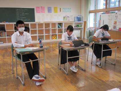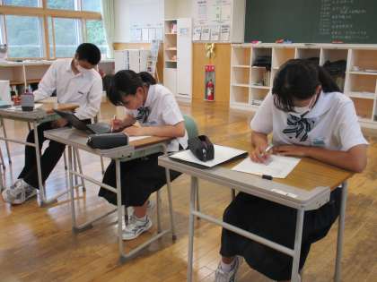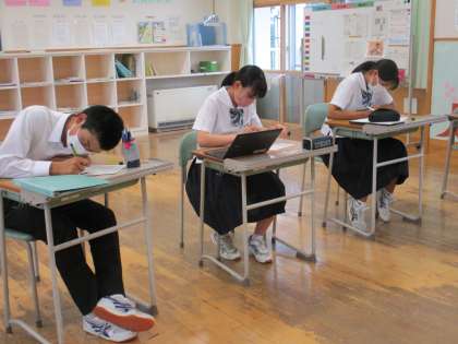 7月12日(火) 3年生の楡の木タイムの様子です。 キャリアパスポートの内容を記入していました。