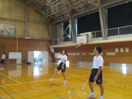 バドミントンのダブルスの試合をしていました。