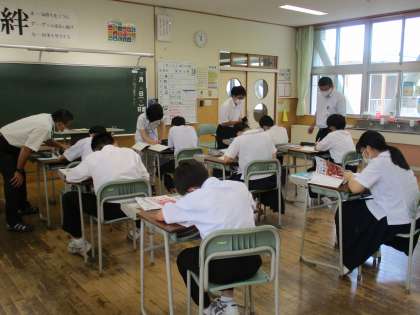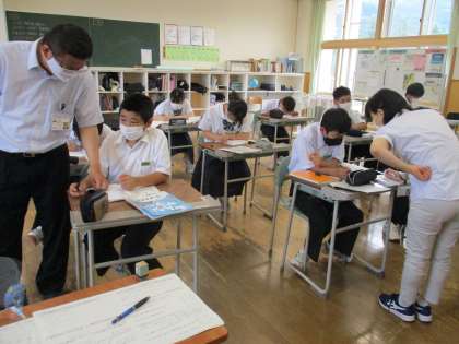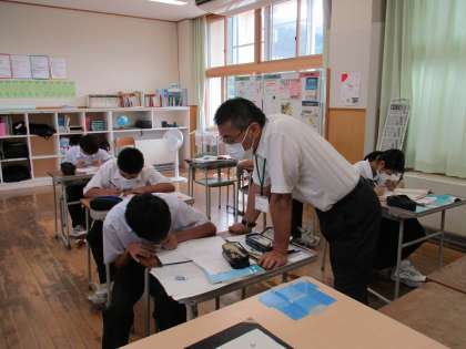 1年3限 数学 公開日 2022/07/14 更新日 2022/07/14 日々の活動から 7月14日(木) 1年生の数学の授業の様子です。 3人の先生で、これまでの復習をしていました。 次回は、期末考査の再テストをする予定です。