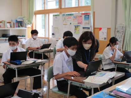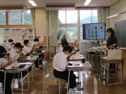 7月19日(火) 1年生の国語の授業の様子です。 漢字テスト、読書のこと、夏休みの課題について等 でした。