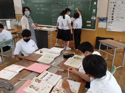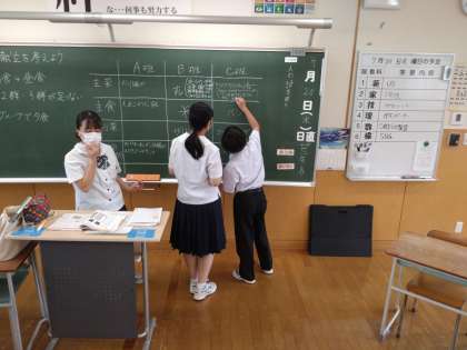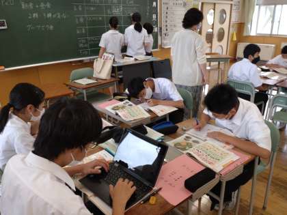 1年2限 家庭科 公開日 2022/07/20 更新日 2022/07/20 日々の活動から 7月20日(水) 1年生の家庭科の授業の様子です。 「1日分の献立を考えよう」という内容の授業でした。 夏休みに作ってくれるのかな?