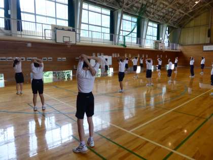 全校5・6限 球技大会 1 公開日 2022/07/21 更新日 2022/07/21 日々の活動から 7月21日(木) 厚生実践部が主催して球技大会が行われました。 種目はビーチバレーでした。 準備運動をしてから開始しました。