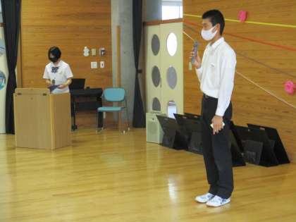 全学年4限 1学期振り返り集会 6 公開日 2022/07/21 更新日 2022/07/21 日々の活動から これで集会が終わるのかと思ったその瞬間に、生徒会執行部から「ちょっと待った」がかかりました。 「スマイル楡の日」の一貫として、「SDGsすごろく」をしました。 生徒会長の終わりの言葉で終了しました。
