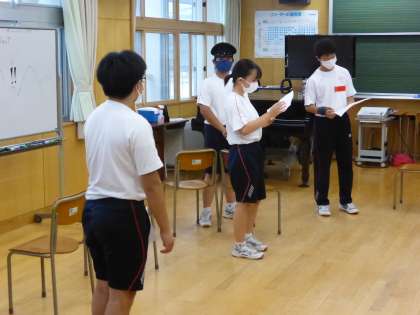3・4限 東京芸術座ワークショップ 2 公開日 2022/07/22 更新日 2022/07/22 日々の活動から 写真は上から、『なりきりダンス』の練習風景 真ん中は、風船が地面に落ちるまでの間に「夏」に関することを言う様子 下の写真は、台本を見ながら演技している様子 です。
