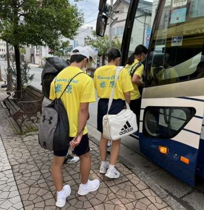 緊張している生徒もいますが、朝ご飯をしっかり食べ、バスに乗り込みました。