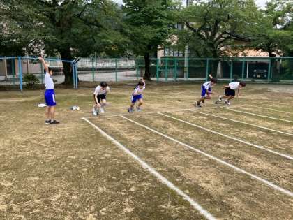 陸上競技部の活動 3 公開日 2022/08/24 更新日 2022/08/24 日々の活動から グラウンドでは中学生が小学生にスターティングブロックの使い方を教えてから、小学生と中学生と一緒に100メートル走の記録を計りました。 小学生の方が速くゴールする場面もありました。