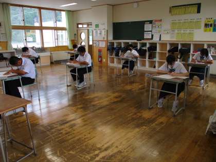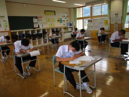 2年生の夏休み明けテストの様子です。主に、夏休み中に取り組んだ課題から出題されます。生徒は、真剣にテストに取り組んでいました。今日から、授業も始まります。新たな気持ちで頑張っていきましょう。