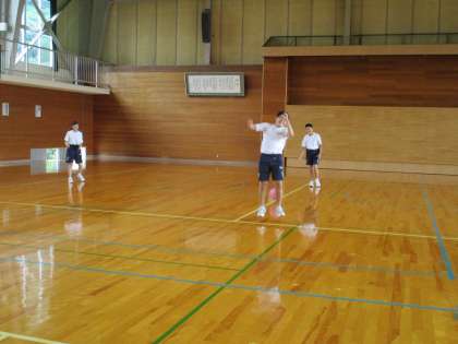 8月30日(火) 1年生の保健体育の授業の様子です。 Tボールの練習をしていました。