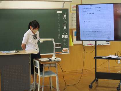 3年6限 楡の木タイム 公開日 2022/08/30 更新日 2022/08/30 日々の活動から 8月30日(火) 3年生の楡の木タイムの様子です。 夏休みに行ったオープンハイスクールの発表会をしていました。