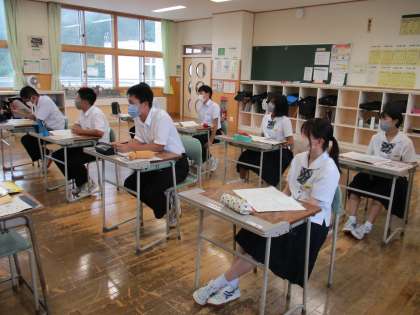 2年4限 楡の木タイム 公開日 2022/09/01 更新日 2022/09/01 日々の活動から 9月1日(木) 2年生の楡の木タイムの様子です。 10月に行く校外学習のしおりが渡され、説明を聞いていました。 その後、班ごとに昼食のメニューについて話し合っていました。