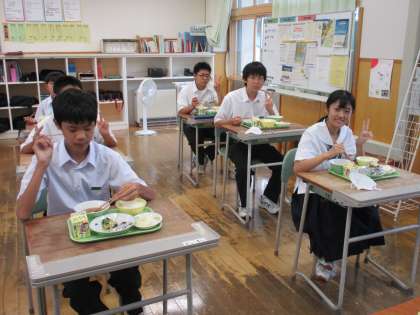 9月1日(木) 1年生の給食風景です。