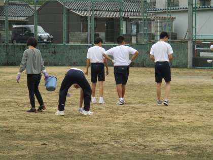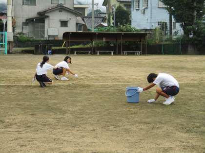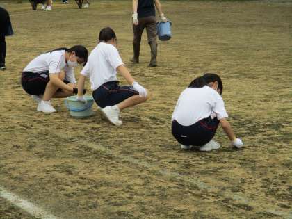 9月1日(木) まず、全校生徒で草むしりをしました。