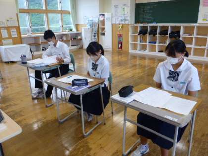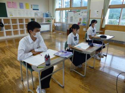 9月2日(金) 3年生の数学の授業の様子です。 テストの見直しをしていました。