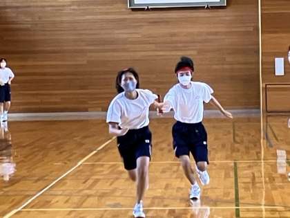 朝のリレー練習 公開日 2022/09/06 更新日 2022/09/06 日々の活動から 9月6日(火) 本日のリレー練習の様子です。 風が強かったため室内で行いました。 各団が工夫してバトンパスの練習をしていました。