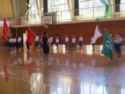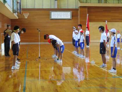 全学年 3限 公開日 2022/09/06 更新日 2022/09/06 日々の活動から 9月6日(火) 体育大会の練習の様子です。 台風接近に伴う暴風のため安全を考慮し、体育館で行いました。 開会式と閉会式の練習をしました。