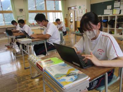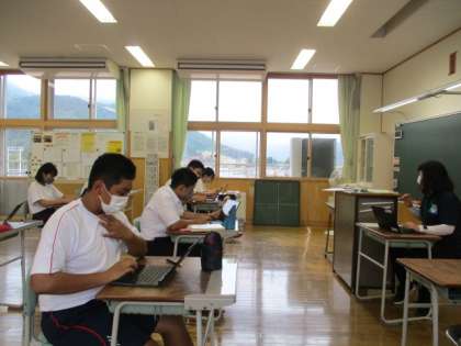 9月7日(水) 2年生の国語の授業の様子です。 発表に使うプレゼンテーションの準備をしてました。