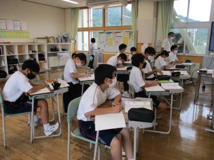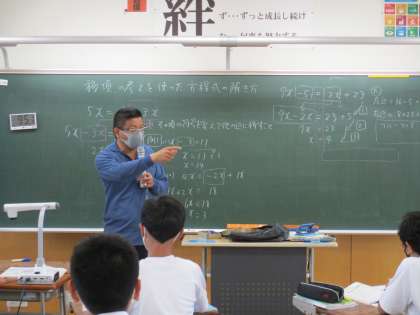 9月8日(木) 1年生の数学の授業の様子です。 移項を使った方程式の解き方を学んでいました。