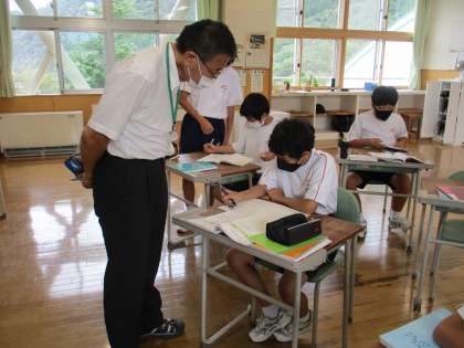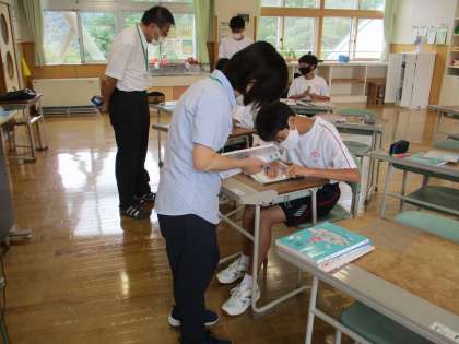 9月8日(木) 1年生の数学の授業の様子です。 2限に習った内容の復習をしていました。