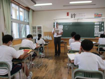 9月8日(木) 1年生の理科の授業の様子です。 「白い粉末の正体について考えよう」という内容の授業でした。