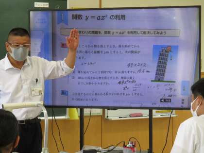 9月13日(火) 3年生の数学の授業の様子です。 「2乗に比例する関数の利用」という内容の授業でした。