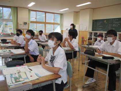 9月14日(水) 1年生の英語の授業の様子です。 3人称単数現在形のsの付け方を学習していました。