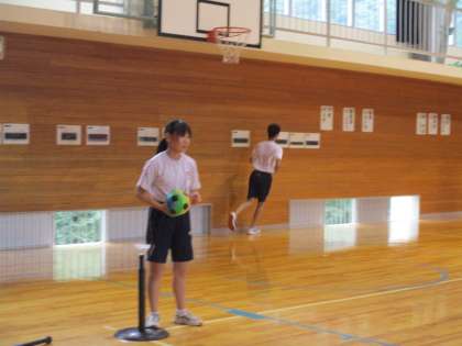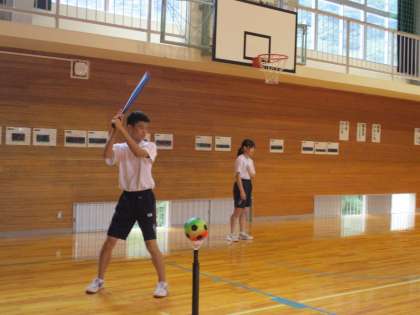 9月14日(水) 3年生の保体の授業の様子です。 課題はバットを強く振ろう!です。