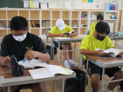 ボート部 公開日 2022/09/16 更新日 2022/09/16 日々の活動から 9月16日(金) 今日は他の部活動は新人大会へ行っています。 ボート部は前半は漕艇場での水上トレーニング、後半は学校で自主学習をしました。 練習後で疲れながらも、各自が集中して勉強していました。
