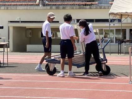 陸上競技部の新人戦の様子 1 公開日 2022/09/16 更新日 2022/09/16 日々の活動から 9月26日(金) 陸上競技部の新人戦の様子です。 まず開会式に参加しました。 2年女子100メートル走の様子です。 補助役員としてハードルのお手伝いをしている様子です。