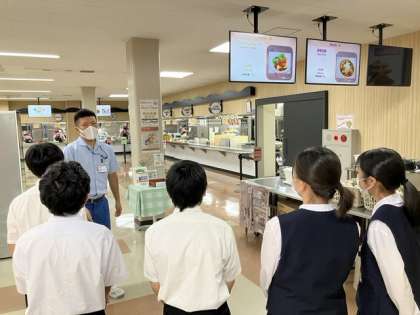 1年生企業見学の様子 2 公開日 2022/09/21 更新日 2022/09/21 日々の活動から 食堂の説明を聞きました。 会社の福利厚生として、豚丼は180円でした。 部門ごとに分かれて食事をとっているという説明も聞きました。