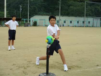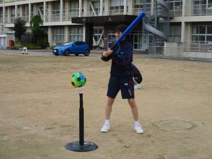 Tボールのバッティング練習をしていました。