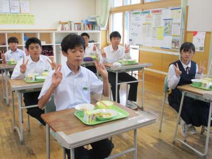 9月22日(木) 1年生の給食風景です。